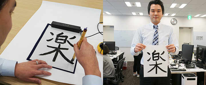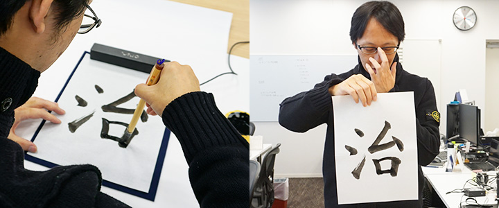 新年ということで、社員のみなさんに書き初めをしていただきました。お題は、2018年の抱負で、漢字一文字で書いていただきました。みなさんの作品とこめた抱負を発表していきます。