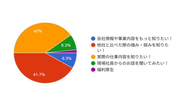 実際の仕事内容や、他社と比べた際の強み・弱みについて知りたいという声が多く寄せられました。